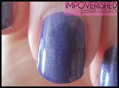 I love purples. I can't have enough of them. I'm not into pinks or reds and blues/greens tend to make my hands look like the cheeks of a drunken Irishman, so purples are my happy medium. Plum is a lovely purple with a delicate silver shimmer. The formula on this, like the rest of the collection was wonderful. The longer dry times I'm used to from Diamond were surprisingly a non-issue for this collection.